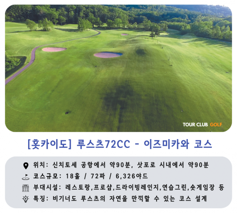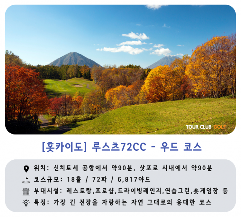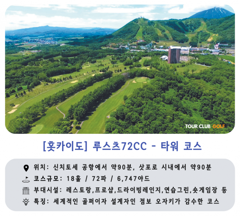 - 루스츠 72CC : 북해도의 자연을 최대한 살린 개성 넘치는 4개의 코스로 이루어진 북해도 최대 규모의 골프장입니다.