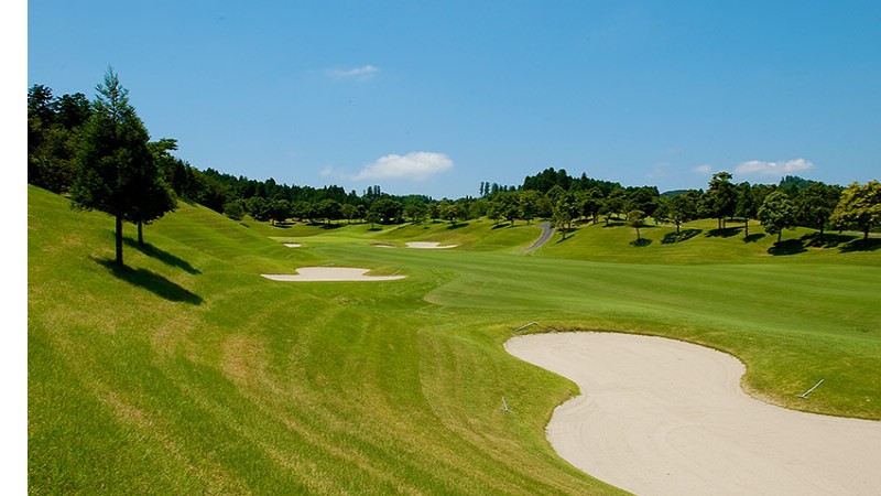 구릉 코스. 큰 연못과 나기사 벙커, 남국의 팜 나무를 배치해 하와이의 골프장을 연상시킨다.