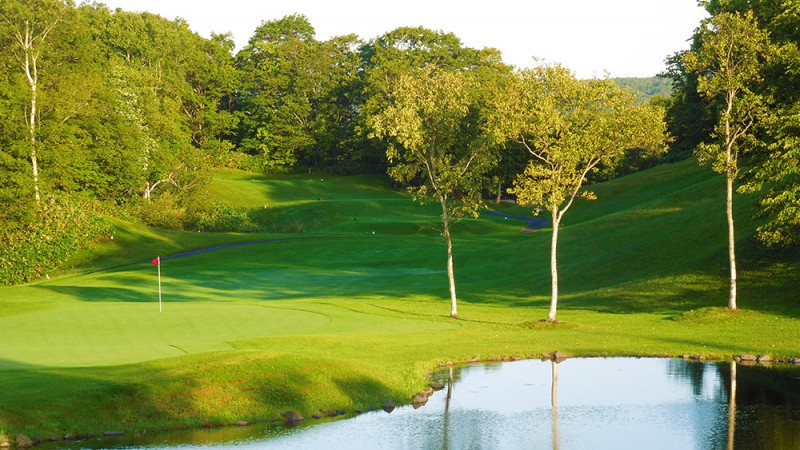 몇 곳의 연못이 있어 벙커도 효과가 있지만 까다로운 곳이 없고, 어디까지나 자연의 조형 속에 들어가는 고심의 설계라고 할 수 있다.