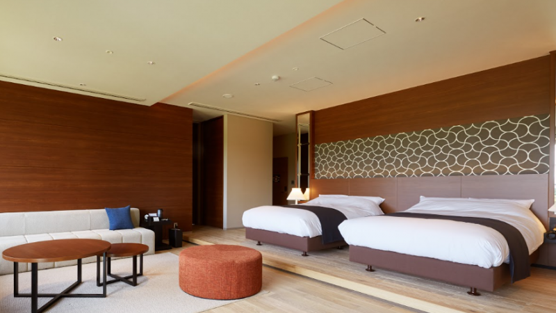 「매우 쾌적한 호텔」을 나타내는 「3 파빌리온」을 획득한, 온천과 숙박을 즐길 수 있는 리조트 골프장.