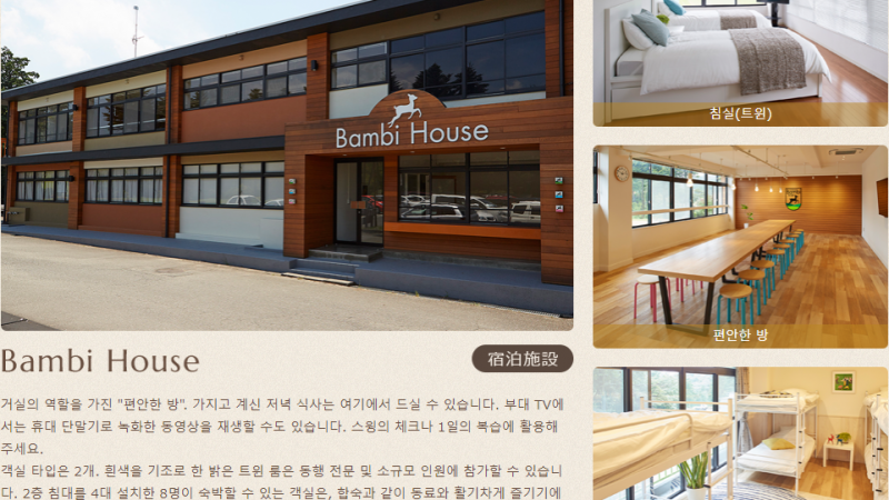 시설 종류: 부지 내 합숙 시설 트윈(2실): ?3,870~/1인 2단 베팅 8인실(2실): ?2,852~/1인 체크인: 10:00~ 목욕: 있음