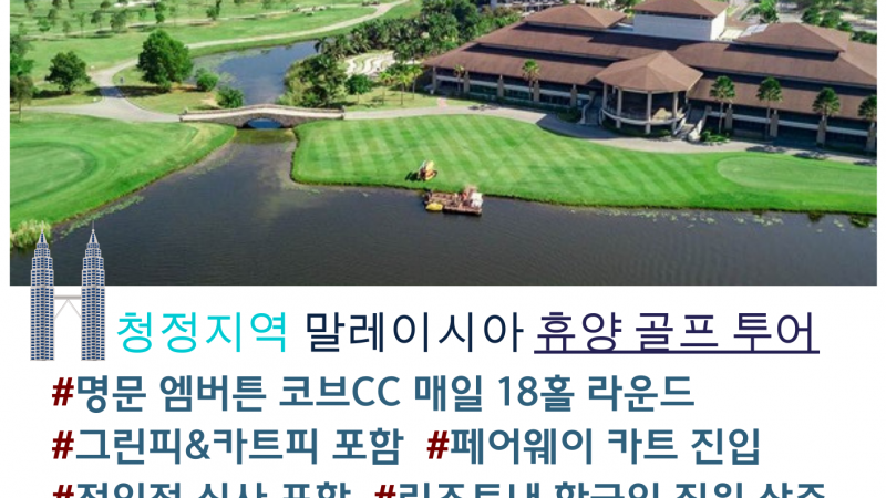 | 5박7일 1,320,000원 | 포함사항 : 1일 18홀 그린피 +카드피 포함(노캐디가능), 골프장내 골프 리조트 2인1실, 전일정 식사 (조.중.석식),여행자보험 불포함 사항 : 송영비 $50/인 |