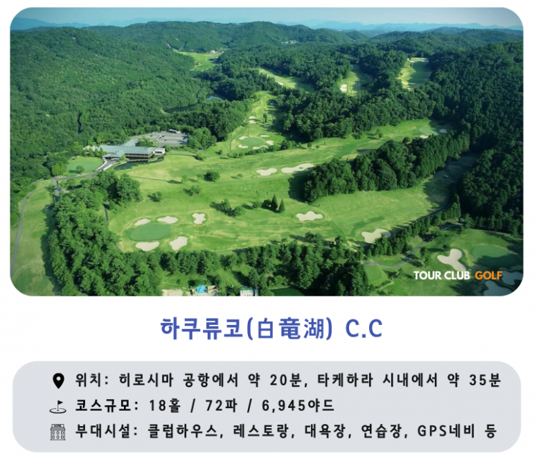 - 하쿠류코(白?湖) CC : 140만 평방미터 부지에 조성되어 페어웨이가 넓고, 일본 남자 토너먼트의 주요 개최지 입니다.?