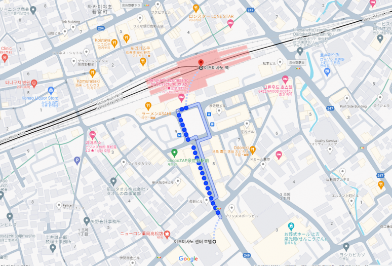 [? 이즈미사노 센터호텔 주변 MAP ] - 이즈미사노 역까지 도보 3분 거리