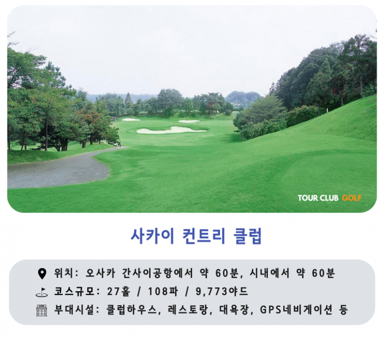 - 사카이CC : 전략성이 풍부한 27홀 규모의 코스로 일본에서는 보기 드문 라이트 설비를 갖춰 나이트 라운드도 가능합니다.