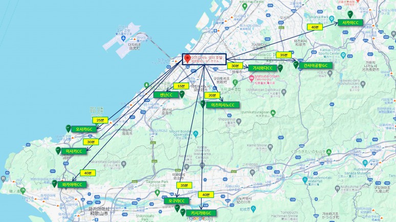 - 이즈미사노CC : 이즈미사노의 웅대한 자연을 살려 자연과 조화를 이룬 개성 풍부한 27홀 코스