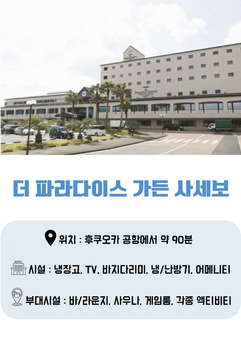 | 숙소정보 : 파라다이스 가든 온천호텔 (2인1실/3인1실) | ||