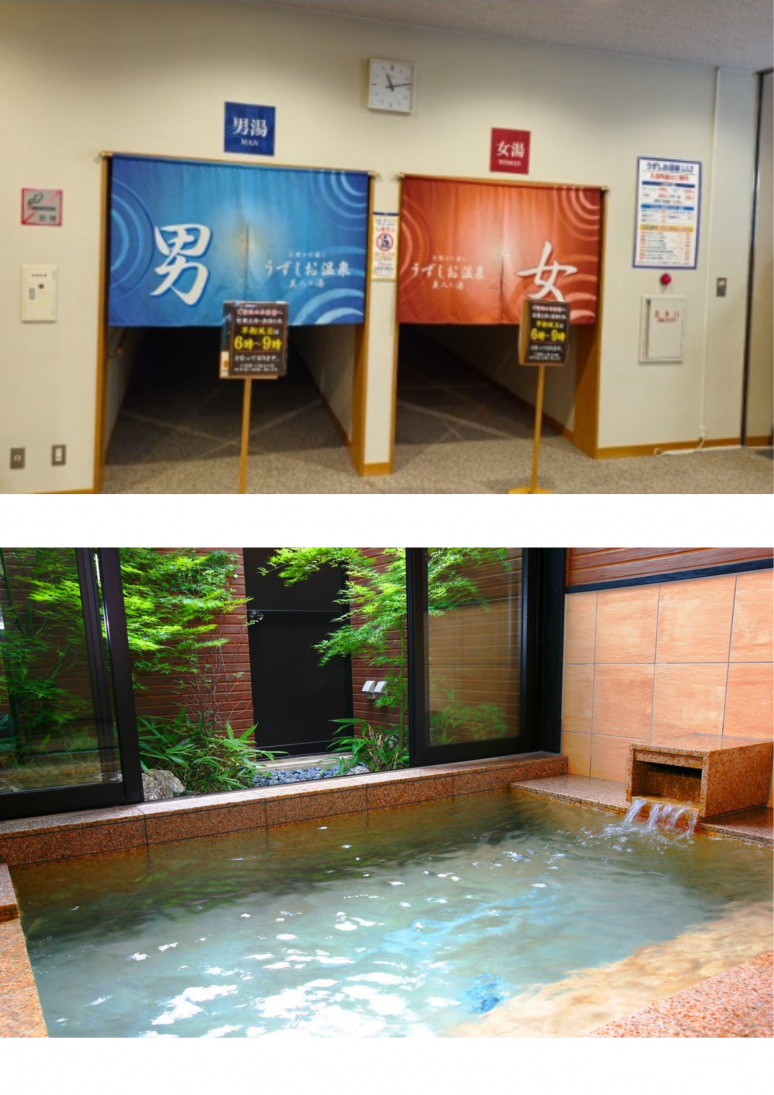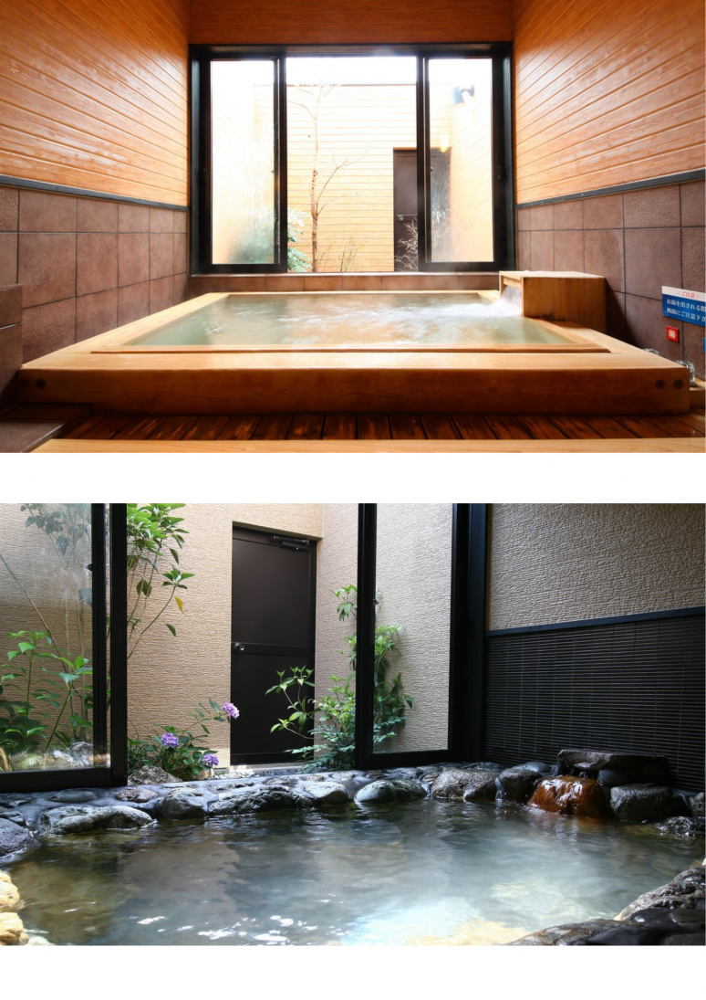 전 객실에서 샤워 할 때는 천연온천을, 대욕장에서는 미끌미끌한 피부미용탕을 만끽 할 수 있으며