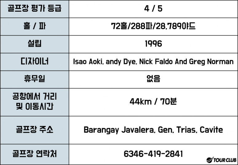 전체적으로 페어웨이와 그린이 좁은편이라 '파온' 시키기가 힘들며, 정확성을 요구합니다. 특히, 앤디 다이 코스는 필리핀에서