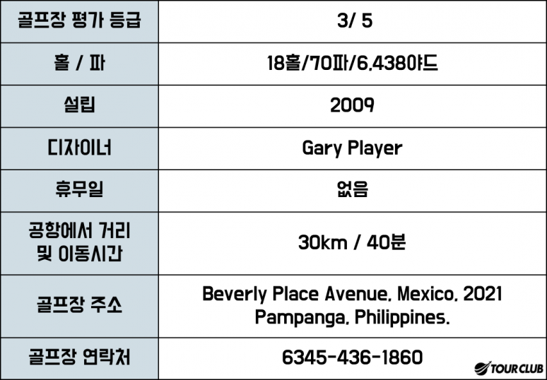 베벌리 플레이스 골프클럽은 세계적인 골퍼이자 설계가인 남아프리카 공화국의 게리 플레이어(Gary Player)의 디자인으로 조성 되어졌는데 2009년에 9홀을 개장하여 운영하다 최근 9홀을 더 개장하여 정규 18홀 챔피언십의 골프 코스로 알려져 있습니다.