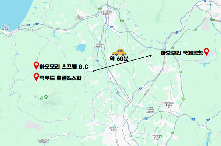 인천 국제 공항 출발 아오모리 국제공항 도착 [회사명] 미팅보드 기사미팅 후 호텔이동(약 60분) 캐리어는 프런트에 보관 / 차량으로 골프장 이동 (약 1분) ▶ 아오모리 스프링 골프코스 9홀 (셀프+카트) / 일몰플레이 체크인 후 레스토랑에서 식사 (뷔페식) / 온천욕 |
