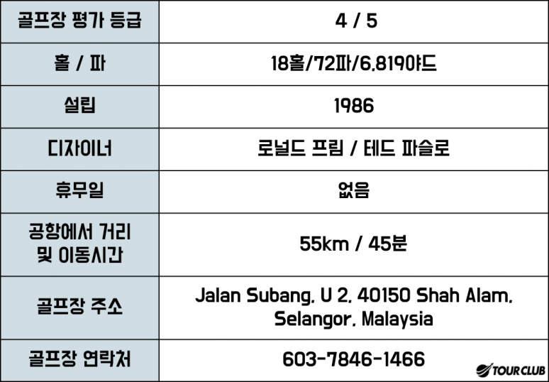 1984년에 설립된 사우자나 골프 & 컨트리 클럽(SGCC)은 '팜 코스'와 '붕가 라야 코스'라는 두 개의 절묘하고 아름다운 챔피언십 골프 코스를 제공합니다. 미국 캘리포니아에 본사를 둔 유명한 골프 코스 건축가 Ronald Fream Design Group이 챔피언십 플레이를 위해 설계한 SGCC는 지속적으로 '말레이시아 1위 골프 클럽'의 지위를 부여하고 세계 '100대 최고의 골프 ??리조트' 중 하나로 선정되었습니다. 코스는 이전에 잘 관리된 기름야자 농장이었던 곳의 기복이 심한 지형에 400에이커 이상 펼쳐져 있습니다. 동식물의 아름다움과 자연 지형을 보존하기 위해 세심한 주의를 기울였습니다. 이를 관찰하는 골퍼가 볼 수 있는 다양한 동물군이 이를 입증합니다.?