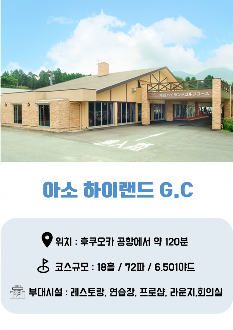 클럽 조식 후 골프장으로 이동 트라이얼 골프&리조트 아소CC - 18홀 라운드 라운드 후 공항으로 이동 후쿠오카 공항 도착 후 개별수속 후쿠오카 국제공항 출발 부산 김해 국제공항 도착 |