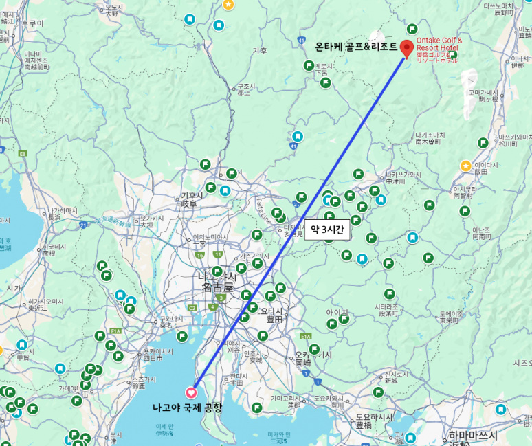 - 온타케CC : 해발 1,200미터 고원에 위치하여 한여름에도 시원하고 쾌적하며 편백나무와 삼나무에 둘러싸인 아름다운 골프장입니다.